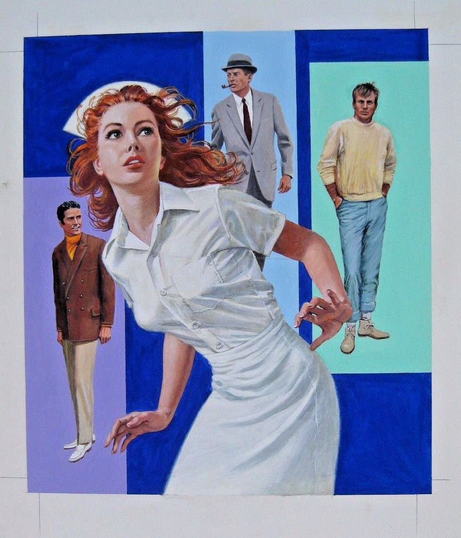 Original cover art for Nurse on the Run. Image area is 12.75" x 11.25 " on artist board. In gouache. No signature on front or verso |