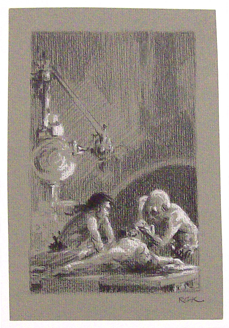 Another original charcoal pencil preliminary drawing for The Mastermind of Mars drawn in late 1962. Image area 4" x 6.75." Charcoal pencil on gray textured paper with "RGK" signature in lower right. Compared to the other pencil drawing, this one is not as detailed. 5: (F-267) Short stories from Daniel Keyes Flowers for Algernon; Kem Bennett A Different Purpose; Ron Goulart Ralph Wollstonecraft Hedge: A Memoir; Robert A Heinlein "All You Zombies -"; R. M. McKenna Casey Agonistes; William Tenn Eastward Ho!; Lee Sutton Soul Mate; Damon Knight What Rough Beast?; Walter S Tevis Far From Home; George P. Elliott Invasion of the Planet of Love; Avram Davidson Dagon; Winston P. Sanders Pact; Joel Townsley Rogers No Matter Where You Go; Jane Rice The Willow Tree; Alfred Bester The Pi Man; and Theodore Sturgeon The Man Who Lost the Sea .