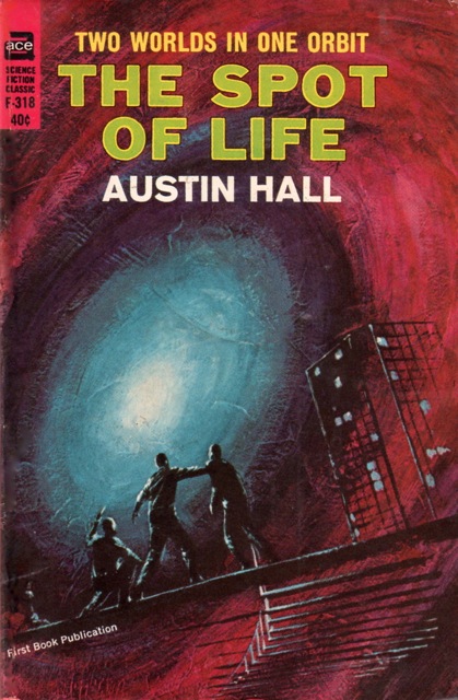 11: (F-318) Austin Hall (1883-1933) wrote mainly in the Western genre. His science fiction writings were mainly in pulps (Argosy, All-Story Weekly, and Weird Tales) and his most recognized (or berated) work is collaboration with Homer Eon Flint in "The Blind Spot" (c. 1921 in Argosy, later published separately in 1951). He wrote an independent sequel "The Spot of Life" (c. 1921 in Argosy, later published separately in 1964).