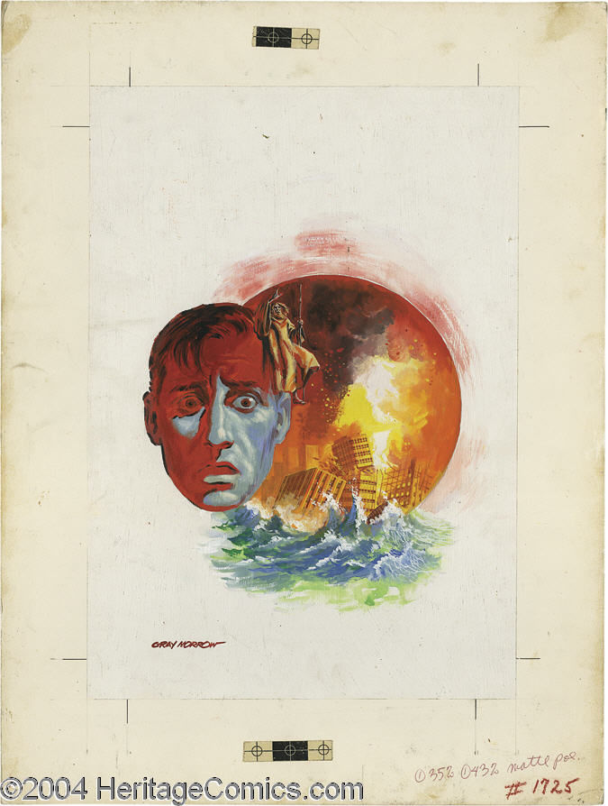 12: (F-325) Gray Morrow (1934-2001) attended the Chicago Academy of Fine Arts, but was mostly self-taught. Introduced to Wally Wood in 1954, he soon embarked on illustration for DC Comics. Drafted in the Korean War, he developed an interest in painting that led to his work in many magazines and books. His artwork ranges from Mad Magazine and Cracked to comic books and men's magazines. In science fiction and fantasy, his work is found in Galaxy, Analog, If, and Fantasy and Science Fiction as well-crafted covers or interior illustrations. He almost completely provided all of the cover art for the Perry Rhodan series published by ACE Books.