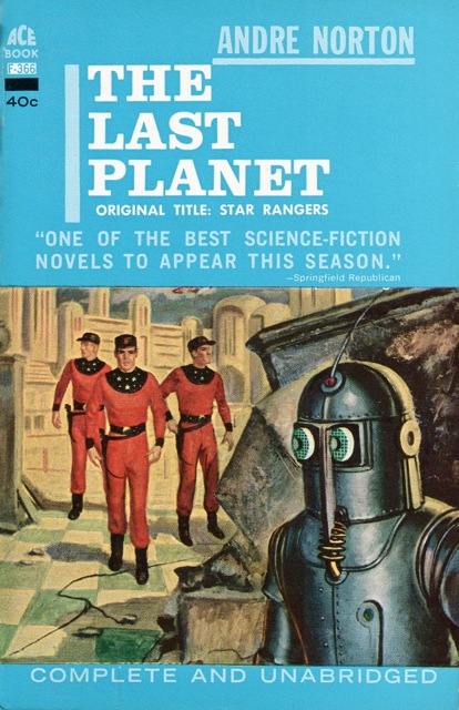 7: (F-366) The Last Planet was originally published as ACE Double D-96 (1955) bound with Aan E. Nourse's A Man Obsessed. It was also released as an ACE Special Edition (single) D-96 (1955) and reprinted in ACE F-366 (1965; date from Tuck). All of these editions use the same cover art by Barton.