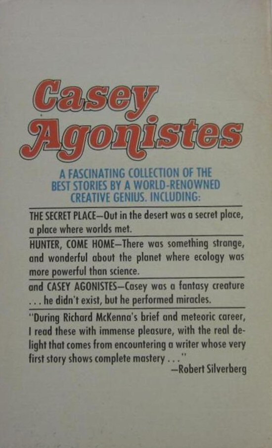 Short story collection includes: Introduction (Damon Knight); Casey Agonistes (1958); Hunter, Come Home (1963); The Secret Place (1966); Mine Own Ways (1960); and Fiddler's Green (1967). Richard McKenna is the author of The Sand Pebbles. I had no idea he had written any science fiction or fantasy short stories. Oh, the things you learn working on this project! |