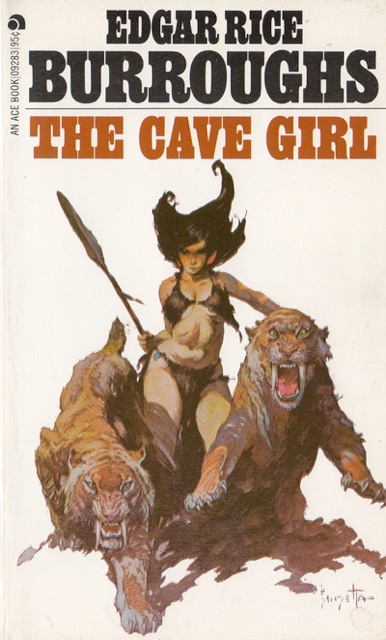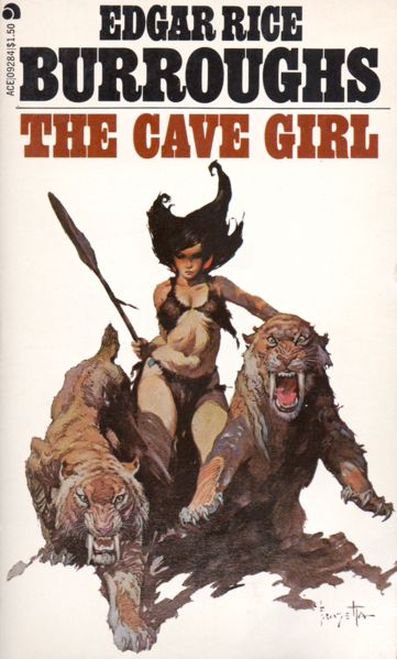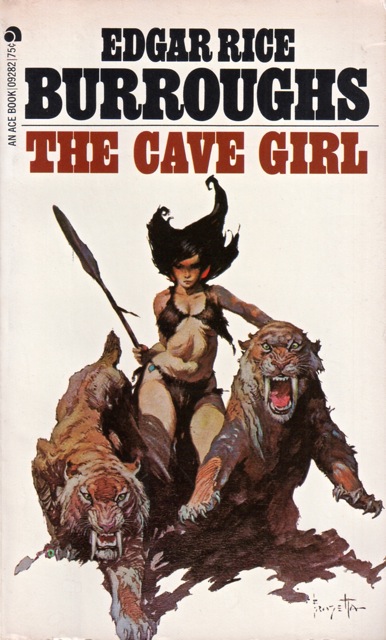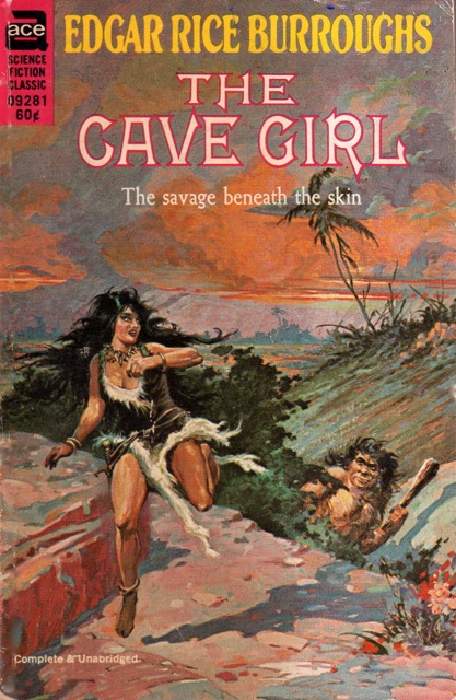 Cover and interior art by Roy Krenkel Jr. This edition is another example of the re-use and renumbering of old stock. The Cave Girl was originally published as ACE F-258 (1964). This is probably the 2nd ACE printing. |